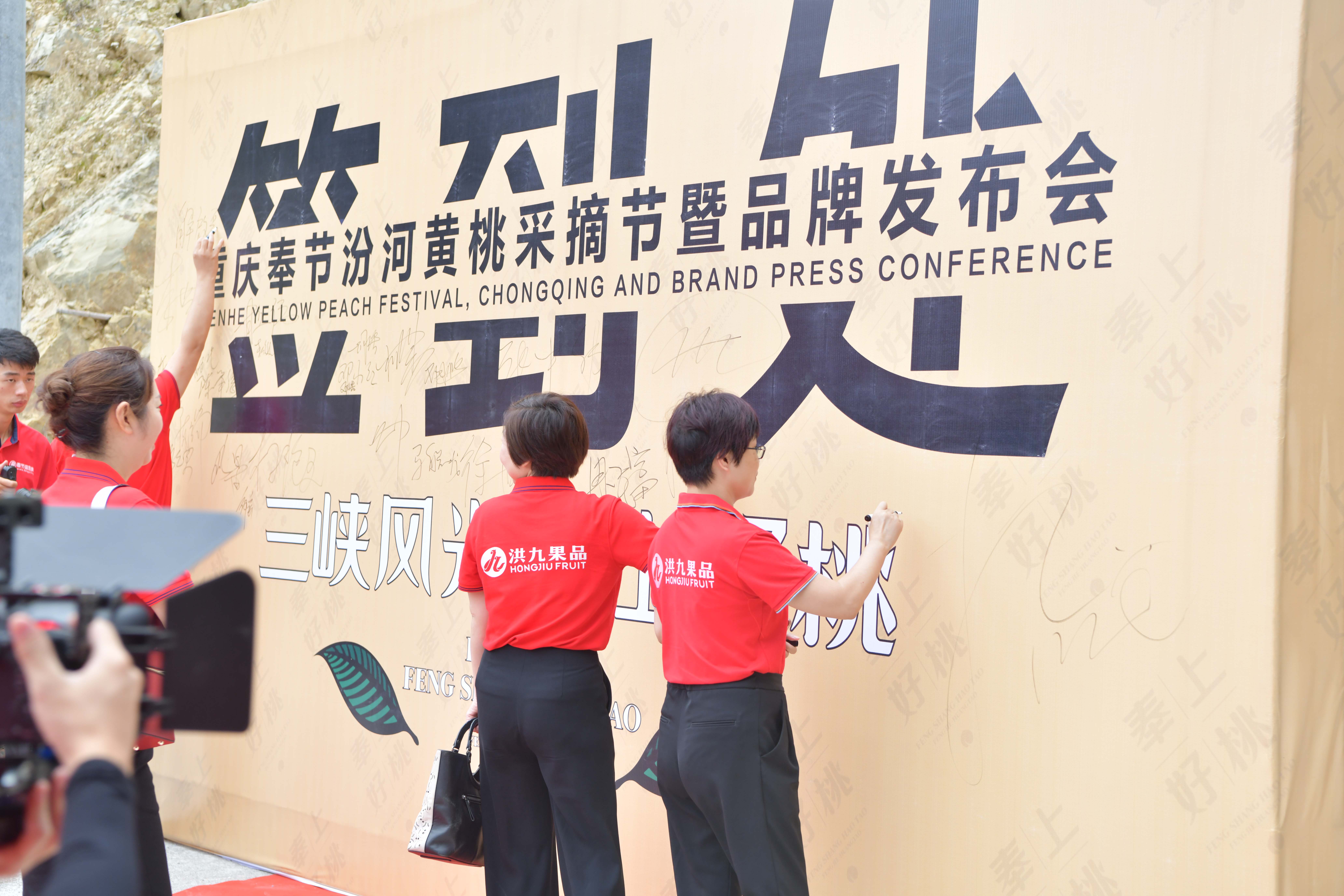 本次采摘暨品牌发布会邀请到重庆市农委张蓉萍处长、奉节县张迁副县长、洪九果品邓洪九董事长、俊添农业邱家俊董事长、汾河镇人民政府曹雪林镇长、阿里巴巴集团李金杨先生等领导共同按下启动按钮。