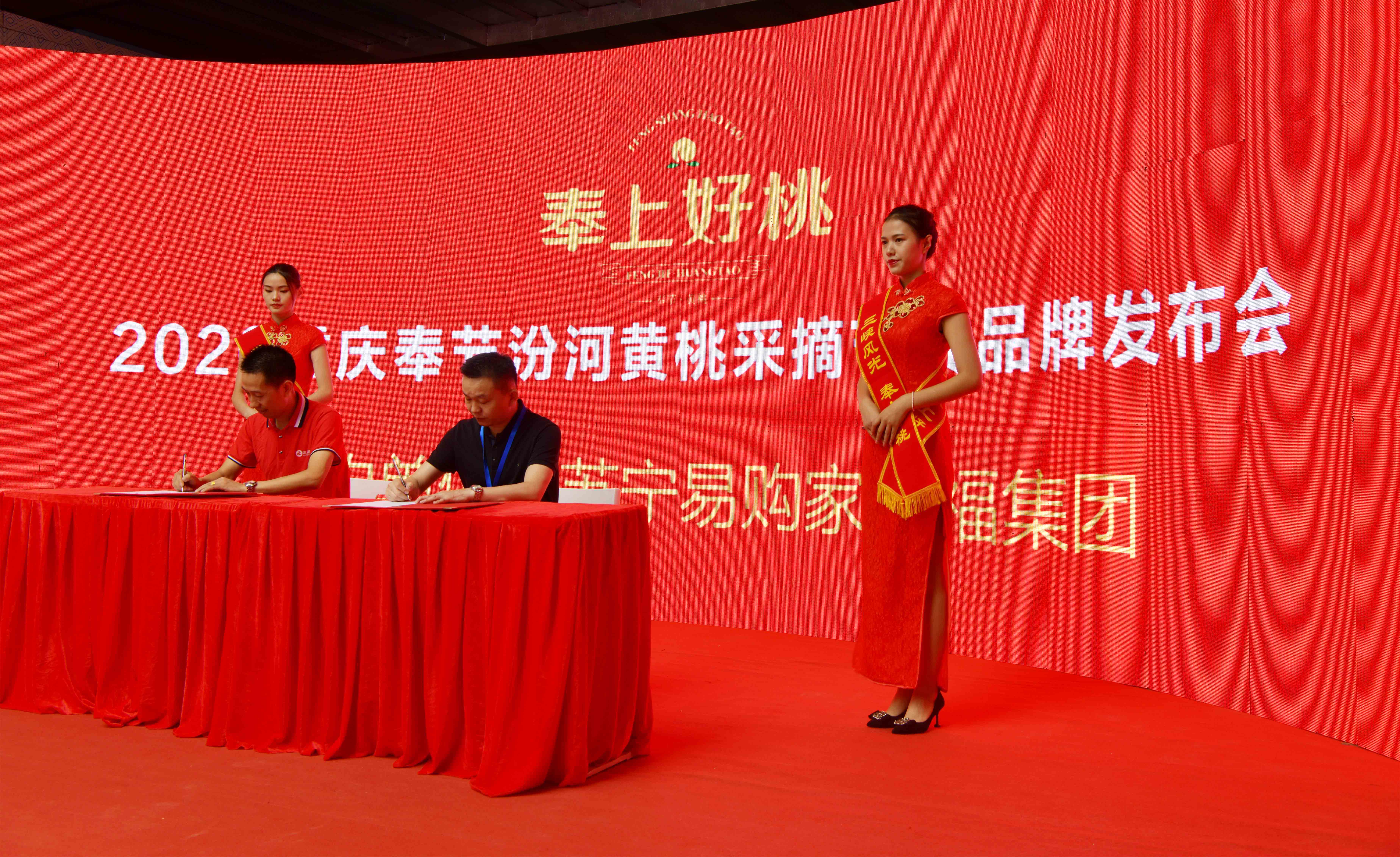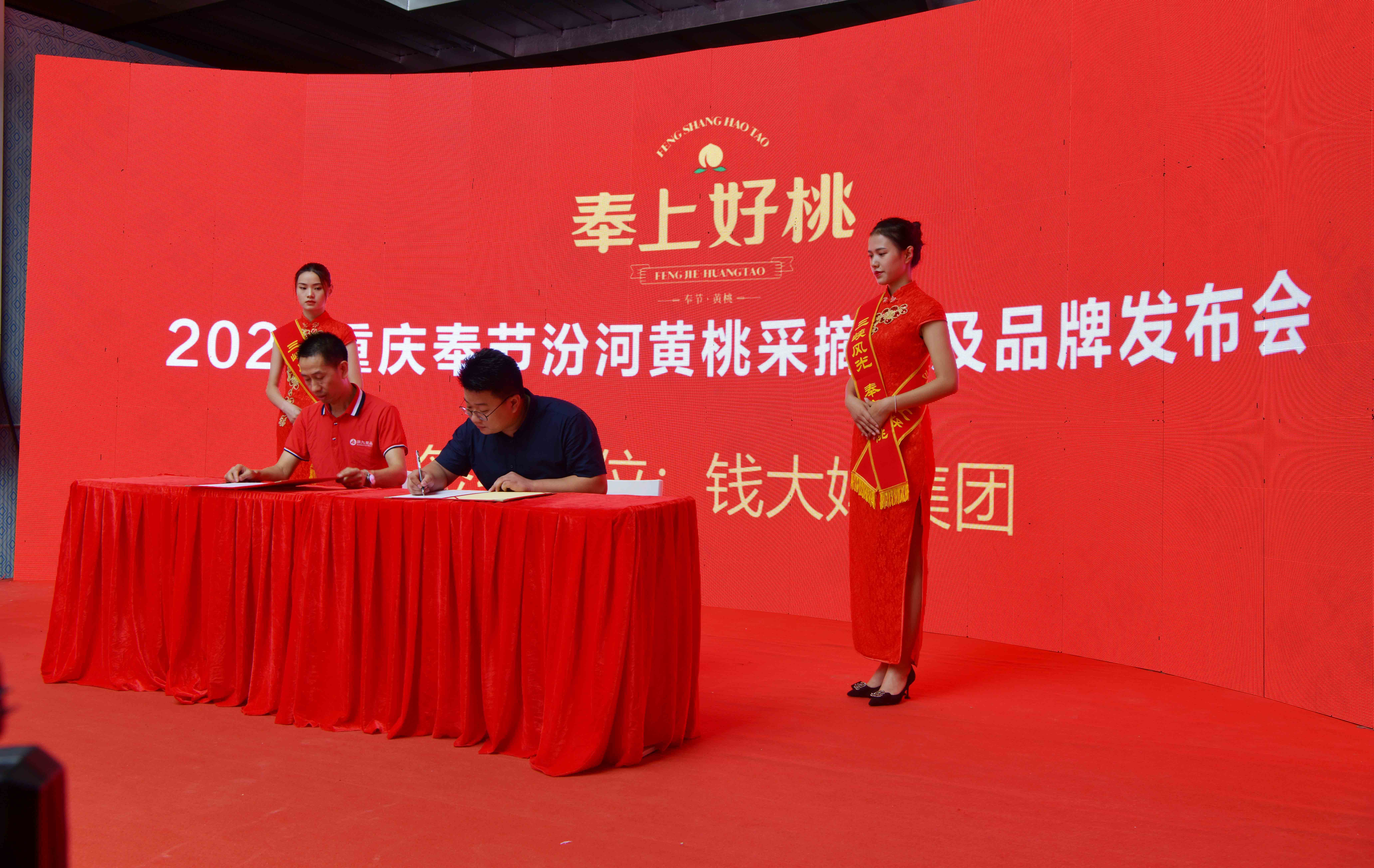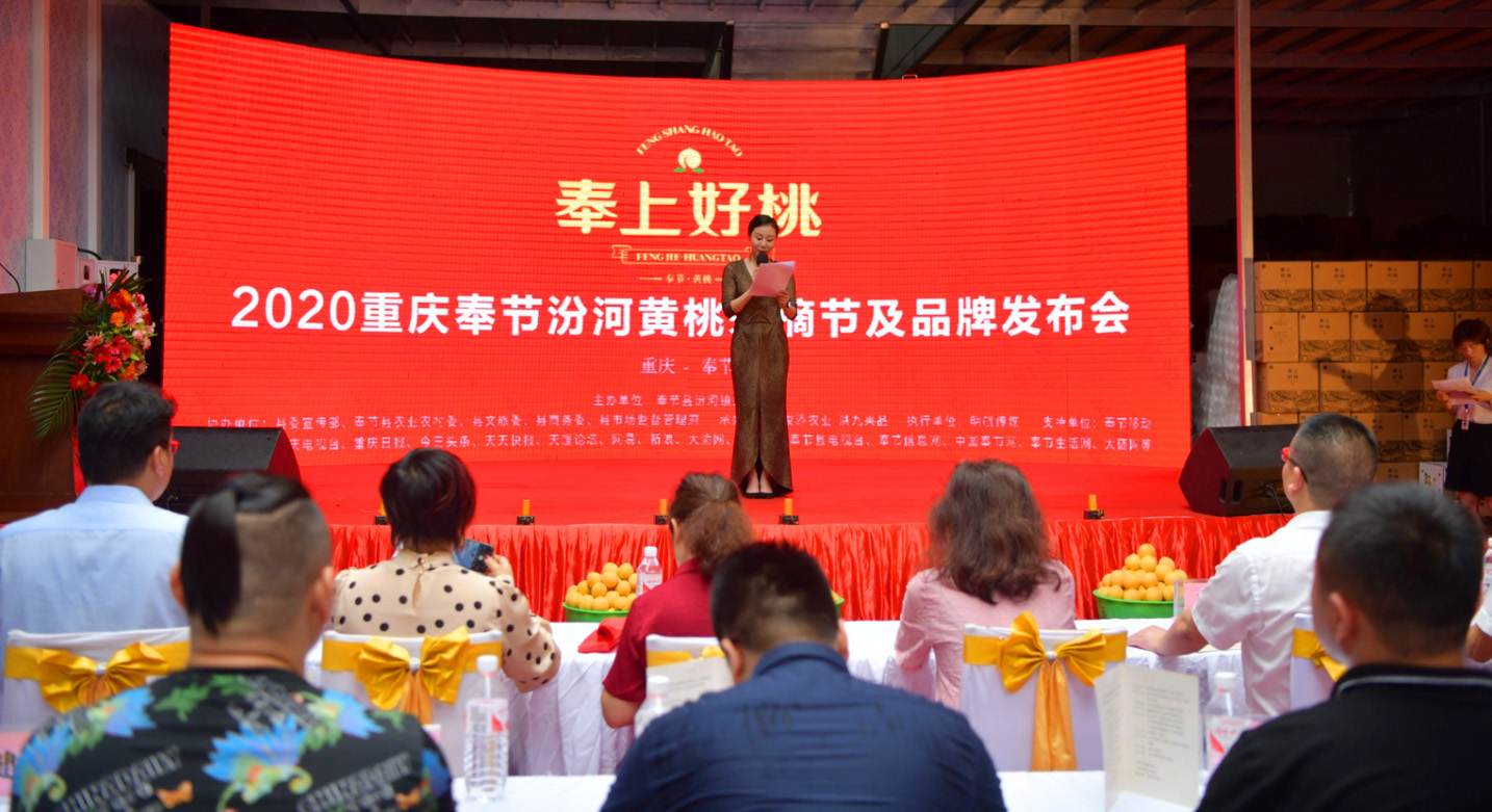 这里就是位于重庆奉节汾河镇俊添农业“奉上好桃”种植基地。25日上午,2020年奉节汾河黄桃采摘节暨品牌发布会在这里迎来了盛大的开幕。