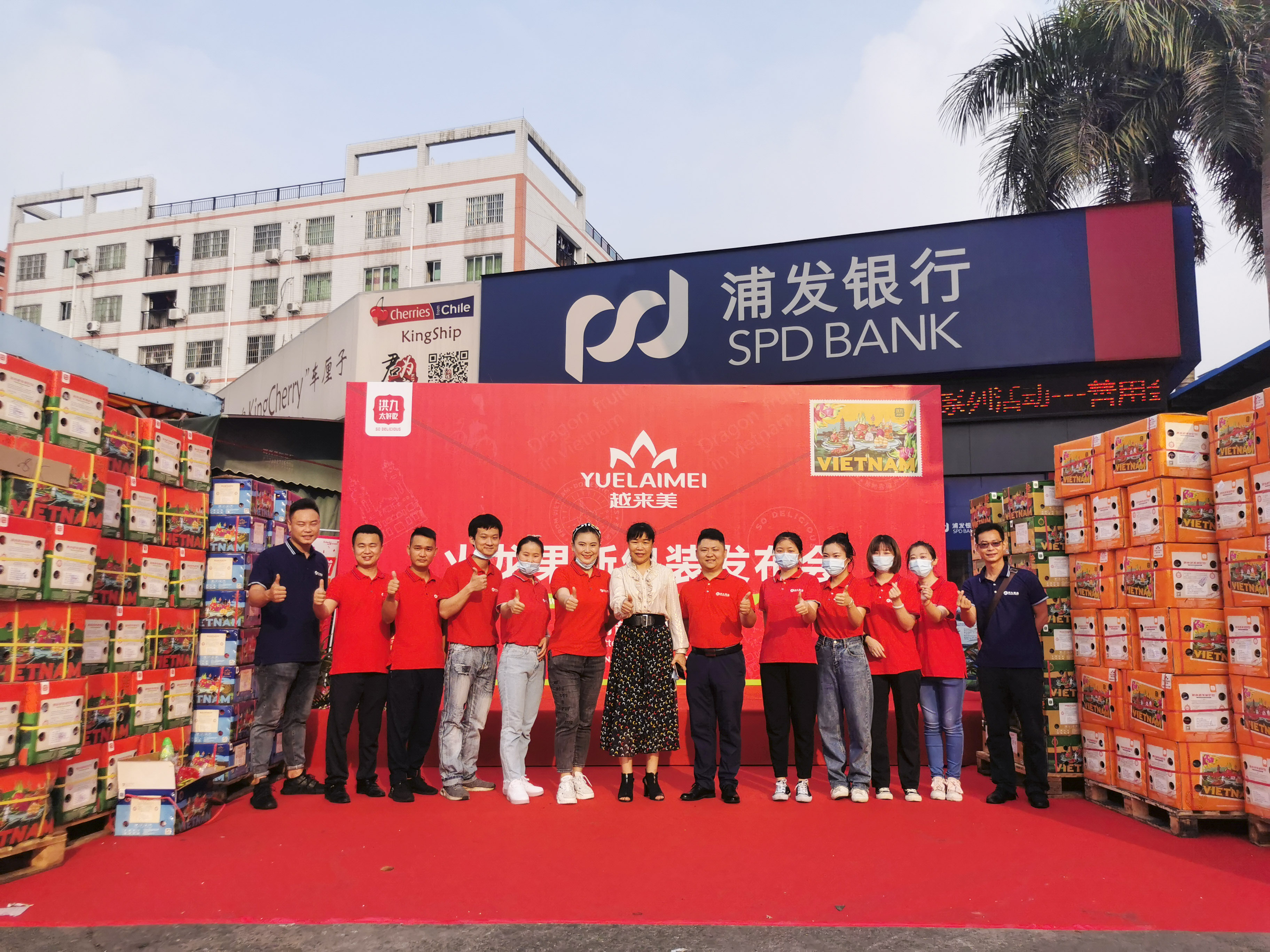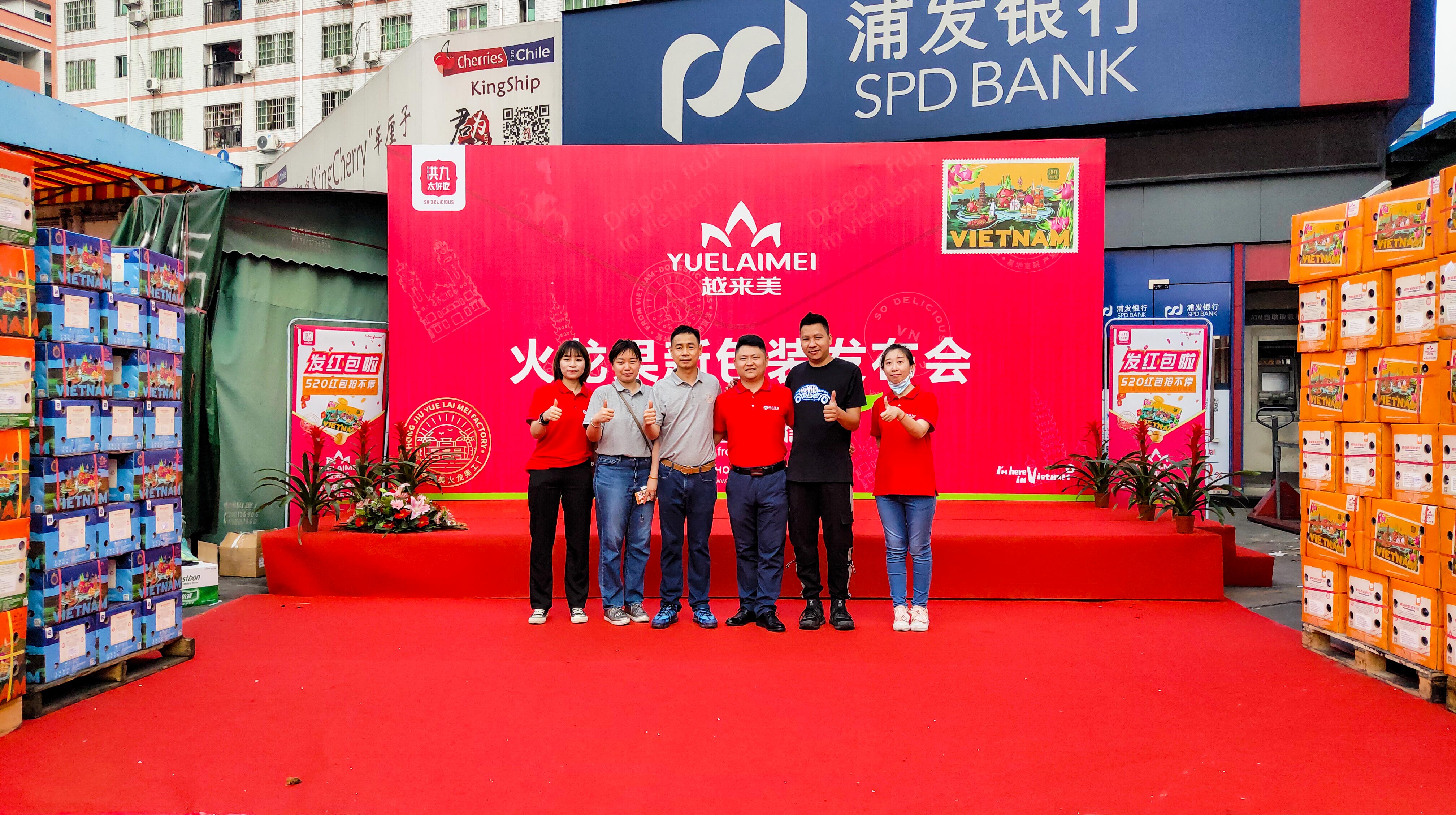 洪九果品荣誉出品——“越来美”红/白心火龙果,全新包装在5月20日率先运抵广州、嘉兴、西安、重庆、成都五城同时开柜销售!在广州江南水果批发市场发布会上,两柜红心和白心火龙果30分钟被一抢而空。