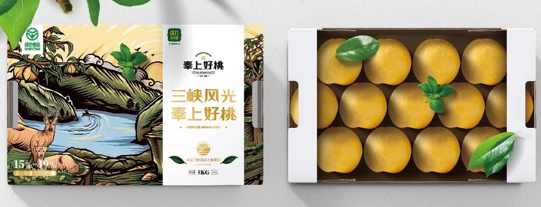 “奉上好桃”品牌是由洪九果品与俊添农业产销联手,品牌和基地共建的优质黄桃种植基地,其种植面积达7000余亩,种植在海拔600米至1080米之间的山区,桃花受海拔高度不同而先后依次开放,花期可以持续到4月初;而黄桃的成熟期则在7-8月,最大单果重500多克,预计2020年产量达到900万斤。“奉上好桃”还获得了绿色食品证书,安全健康,口感软中带硬,酸甜可口,香气宜人,风味独特,成熟糖度可达17-18度,深受广大消费者喜爱。