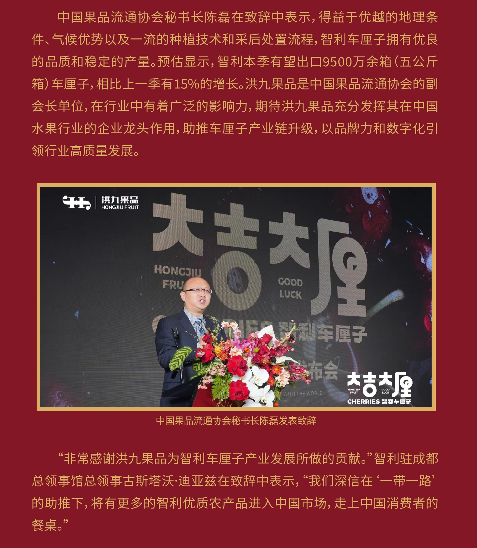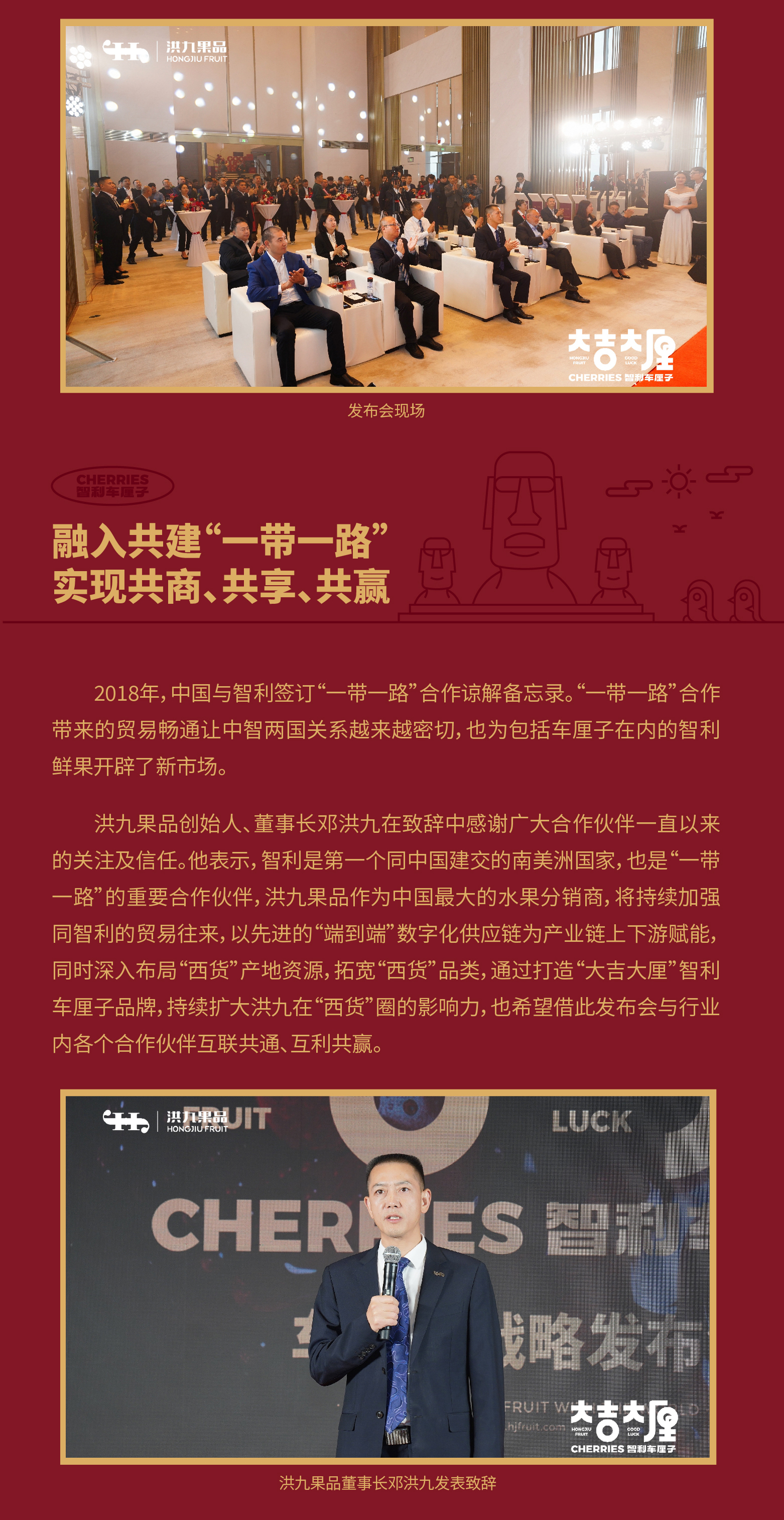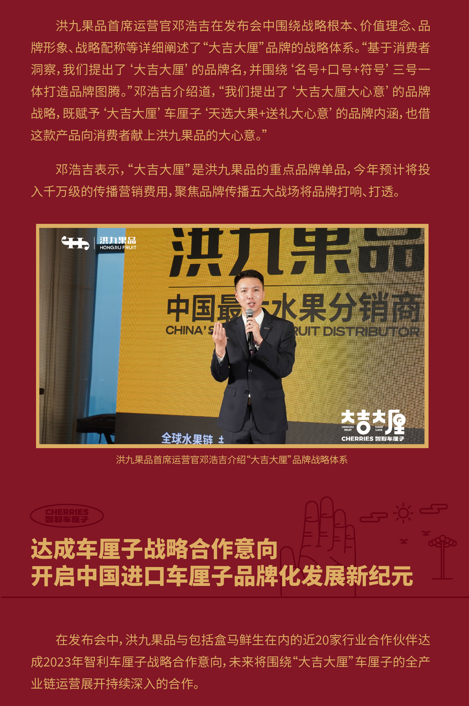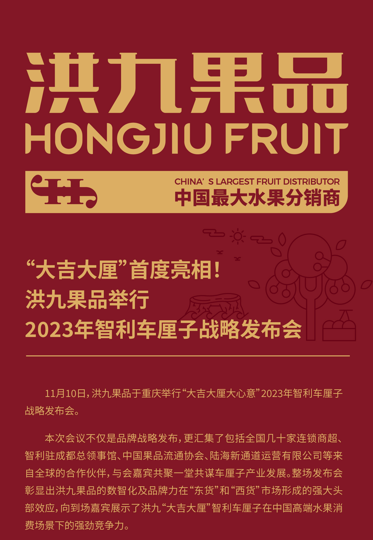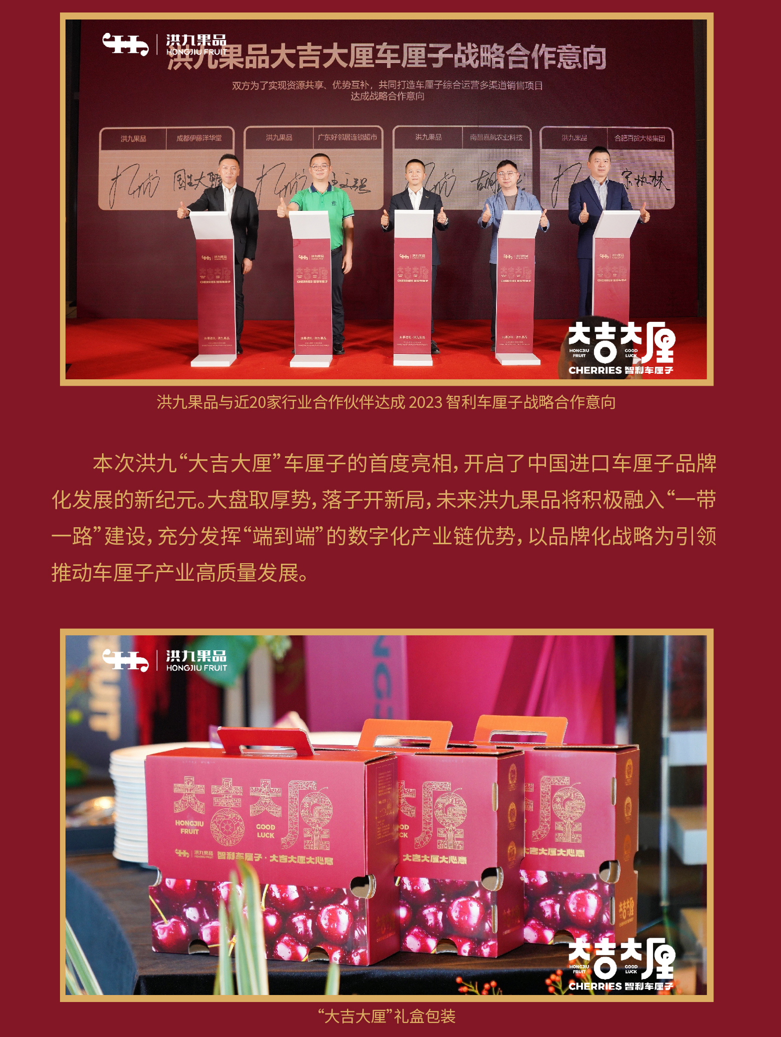 “大吉大厘”首度亮相!洪九果品举行2023年智利车厘子战略发布会